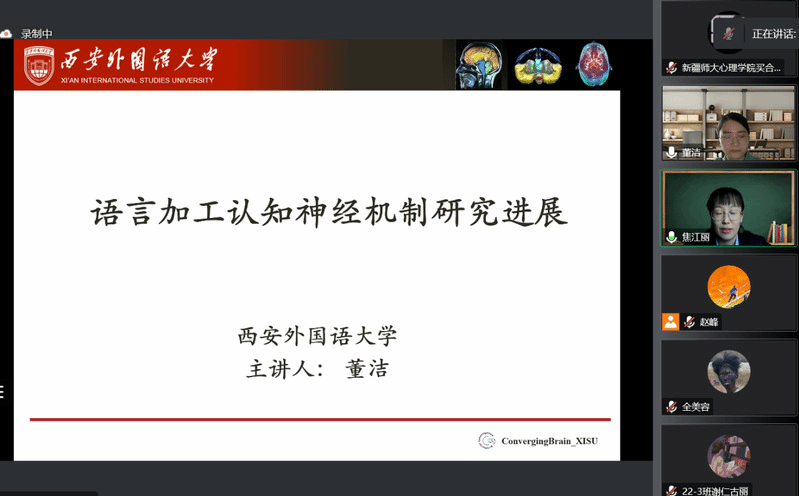 为促进学术交流、启发学术思考,根据2022年度“学术月”活动安排,20221029日上午,金年会jinnianhuicom和自治区重点实验室联合举办的“青年学者论坛”邀请西安外国语大学董洁副教授做了题为《语言加工认知神经机制》的学术讲座。金年会jinnianhuicom教师、研究生和部分本科生聆听了本次讲座。讲座由金年会jinnianhuicom焦江丽教授主持。