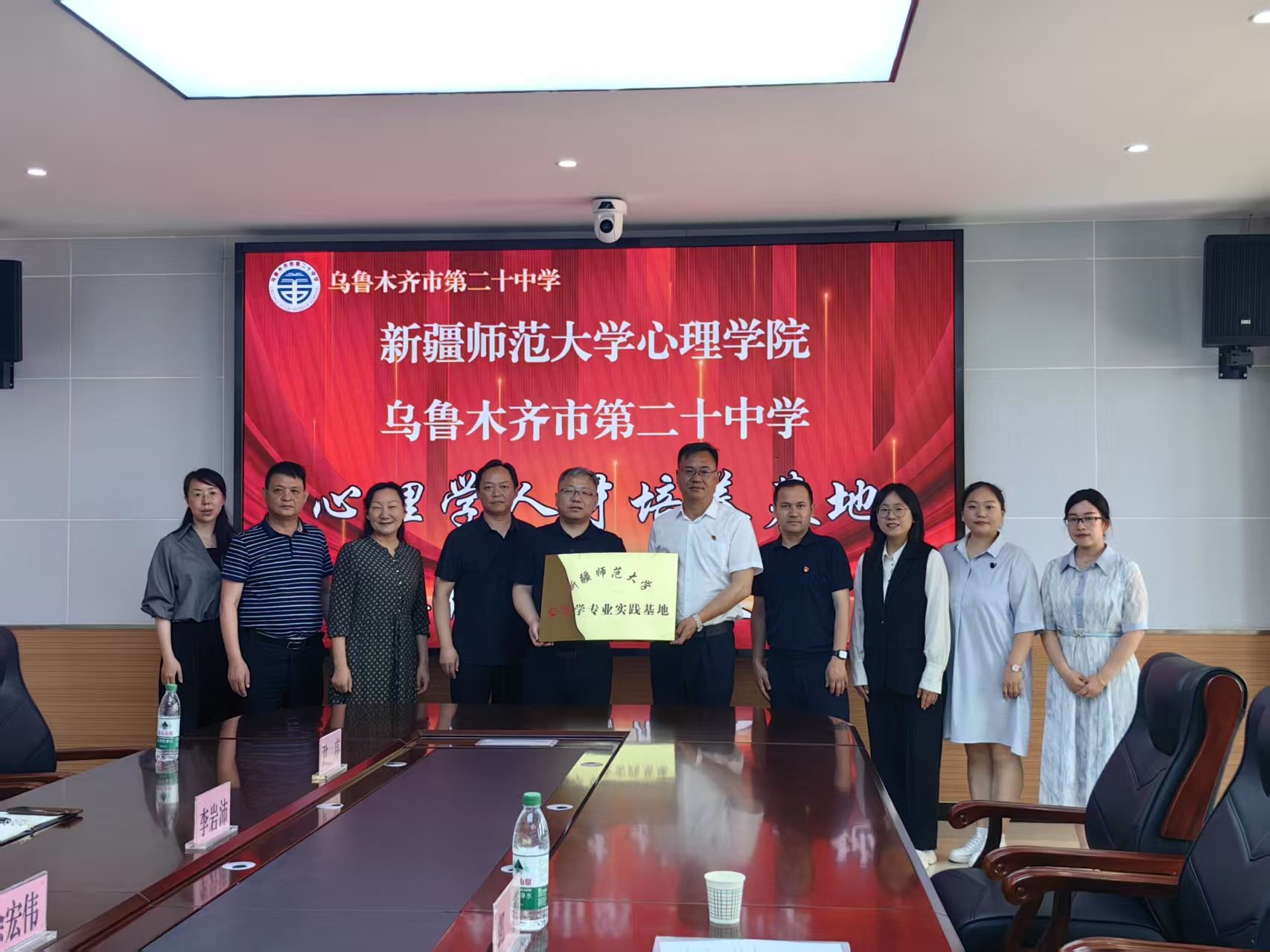 2025年6月4日上午10时30分,金年会与乌鲁木齐市第二十中学教育实践基地签约仪式在乌鲁木齐第二十中学尚德楼五楼会议室举行。学院党委书记许尔湘、副院长伊力扎提·麦麦提、应用心理学系副主任郭薇,乌鲁木齐市第二十中学党总支书记欧永涛、校长徐宏伟、副校长张萍和副校长李岩沛等校领导,心理学科教师共同参加席活动。