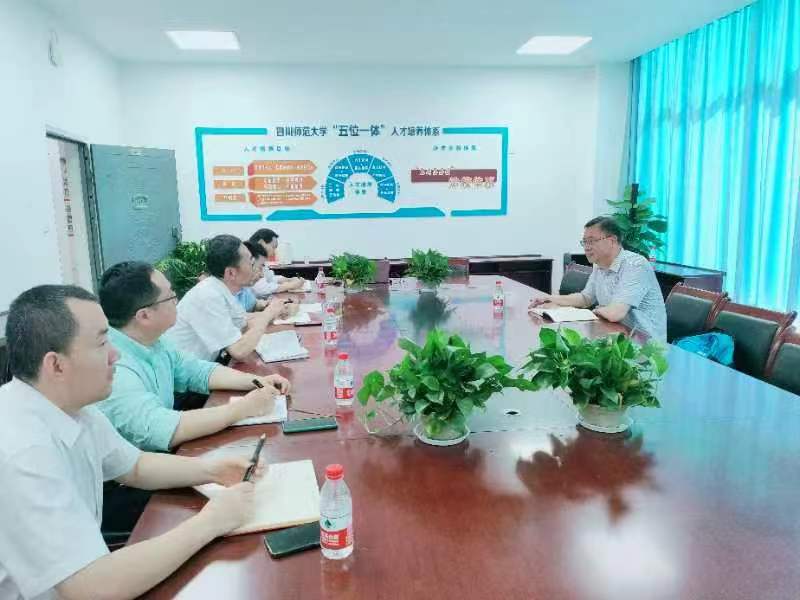 5月21日上午,许尔湘前往四川师范大学金年会jinnianhuicom,与学院领导班子就学院整体建设发展、学科建设、师资队伍、实验室建设、毕业生考研、本硕毕业生就业等进行交流,四川师范大学金年会jinnianhuicom学院党委书记肖柯、院长靳宇倡、副院长杨小洋等参加座谈。座谈后,还参观心理实验室建设和运行情况。