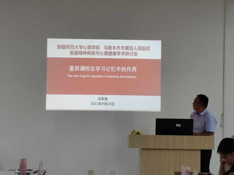 9月20日,金年会jinnianhuicom与乌鲁木齐市第四人民医院(新疆精神卫生中心)联合召开 “精神疾病与心理健康”学术研讨会的“第一期,旨在为我区心理学和精神学专业人员打造合作和交流的学术平台,深化精神卫生中心和金年会jinnianhuicom的合作。乌鲁木齐市第四人民医院院长、副书记徐向东、乌鲁木齐市第四人民医院副院长何华一行10人和金年会jinnianhuicom师生参加了此次研讨会。研讨会由金年会jinnianhuicom院长买合甫来提·坎吉主持。首先由买合甫来提•坎吉教授介绍了金年会jinnianhuicom的发展历程、师资队伍、人才培养、自治区重点实验室建设、专业实践基地建设、社会服务等。乌鲁木齐市第四人民医院院长,金年会jinnianhuicom硕士生导师徐向东教授介绍了四人民医院医院的管理、经费支持、硬件设施、队伍建设以及标志性成果和影响力等方面。