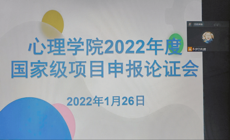 为提高金年会国家级科研项目申报质量中标率,提升教师科学研究能力,1月26日下午,金年会jinnianhuicom以线上方式召开2022年度国家级项目申报论证会。金年会心理学学科带头人买合甫来提·坎吉教授、学术带头人刘毅和李莉莉副教授担任本次论证会的评审专家,金年会邹洁、马学海、高嘉成、郭薇等拟申报2022年度国家级项目的教师参加了本次论证会。评审项目类型包括国家社科基金、国家自然科学基金和教育部人文社科基金项目。