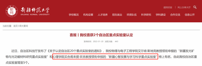 新疆心智发展与学习科学重点实验室,是在1984年成立的心理学综合实验室的基础上建立,前身为金年会jinnianhuicom认知与人格重点实验室和金年会jinnianhuicom心智发展与学习科学重点实验室。经过两轮校级重点实验室建设,依托全疆唯一一家心理学一级学科硕士点,以及自治区心理学实验教学示范中心、特殊教育实验室等平台,立足新疆社会稳定与发展及教育改革的重大需求,着眼于心理学、语言学、认知神经科学、教育学和教育技术学等交叉领域,形成了学习心理、语言认知和社会性发展三大研究领域。
