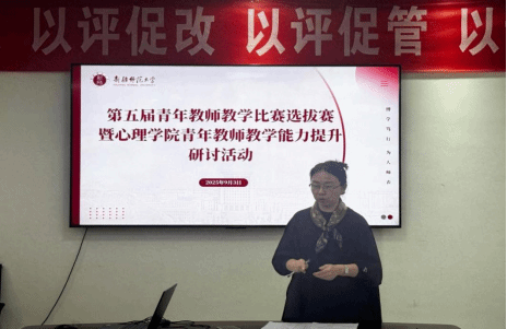 随后举行教师课堂教学质量提升专题研讨活动。王雨晴副教授以《过程性考核设计与评价方法》为题,系统梳理了过程性考核的实施策略与评价标准,助力教师科学评估学生学习成效;贾永萍教授则围绕《心理学前沿知识如何融入课堂教学》,结合实例阐释将学科最新进展有机嵌入课程内容的方法,拓宽了教学视野,激发了课堂创新思维。